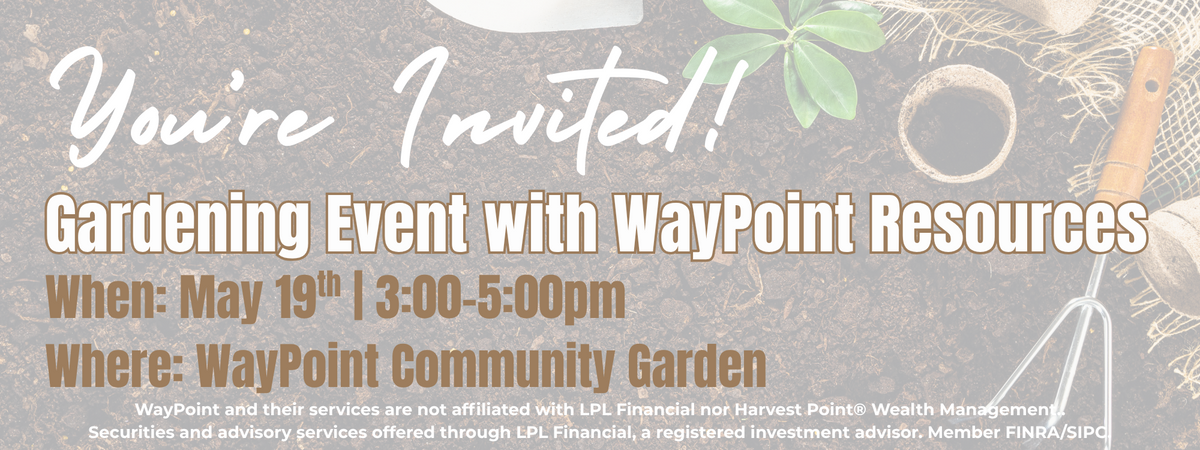Join the Harvest Point® Team as we spend the afternoon volunteering for WayPoint Resources in their community garden. We will get our hands dirty and learn more about the mission of WayPoint as they prepare for a fruitful season ahead. Please be sure to RSVP so that we can know how many volunteers to expect and plan accordingly!